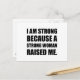 Female strength, grit, determination and resilience in the quote I’m strong because a strong woman raised me. Check out this funny custom design on tees, shirts, mugs, cases, gifts and apparel.