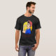 I give wanted to give this a 4 instead of a 5 because these Basic DARK T0shirts run unexpectedly SLIM or Narrow. Which is great if you do not have a potbelly, but I have a paunch. It isn't the shirt's fault that I've got a beer belly. The design and shirt itself is a quality cotton shirt. The color is more of a deep purple, but still a very pretty color. The Basic DARK T-shirts run a bit SLIMMER than the Basic Ts. The neck is a fraction narrower (or seems to be narrower) also. I'm a paunchy middle-aged woman and my neck is 12 inches (31cm) thick and the neckline fell about the same as in the photo of the man, and I had the desire to tug it a bit. So if you're a thick necked man or like loose shirts, be aware these are slimmer shirts. Once I get rid of my lockdown paunch it'll look great. The shirt washed well in cold water with no apparent bleeding. We don't have a dryer, so it hung dry. Did not shrink. Love the colors and the design. The design looks smaller on my shirt than it does on the model on-line. But still, it looks good on the shirt. The printing looks as it does on the model, just the size seems fractionally smaller. Washed garment in cold water, hung dry and design appeared unaffected.