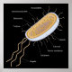 Diagram of a bacillus ( rod shape) bacterium with capsule, cell wall, plasma membrane, cytoplasm, chromosomal DNA (nucleoid) , plasmid, ribosomes, flagella, fimbriae and pili (pilus). On black background. Scientifically accurate. Great for school science lab, doctor offices, clinic, hospital,... for educational purposes. Vector file scaleable to any size without losing resolution. Check out my store for more medical illustrations, both serious and fun stuffs. All images are made by myself, a scientist. If you cant find what you need here, just drop me a comment.