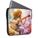 A decorative laptop bag with a somber picture of a young girl strumming her guitar, under a stormy sky.