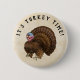 This handsome brown turkey is really strutting his stuff on this customisable pin back button. This fun little accessory is sure to bring a smile to anyone who sees it this Thanksgiving season. Leave the "It's Turkey Time!" text as-is or personalise it with your own text.