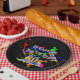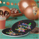 Set of eight 9” paper plates with an image of red, orange, yellow, green and blue paint splatters, high-top sneakers in neon colours, cassette tapes, colourful sunglasses and the phrase “Stuck in the 80s” in neon letters. See matching candy jar, espresso cup, flask, mug, pitcher, shot glass, teapot and coasters. See the entire Tubular 80s Plate collection in the FOOD/BEV | Dishes section.