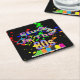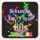 Set of 6 square pulp board disposable coasters with an image of red, orange, yellow, green and blue paint splatters, high-top sneakers in neon colours, cassette tapes, colourful sunglasses and the text “Stuck in the 80s” in neon letters. See matching plastic coaster and napkins. See the entire Tubular 80s Coaster collection in the FOOD/BEV | Coasters section.