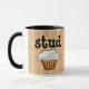 Funny stud muffin features a brown vanilla cupcake muffin with white frosting on top, a clever play on words saying for the buff guy who likes to workout, boyfriend whose a metrosexual or just general funny men with a sense of humour on valentines day. All Designs Copyright © 2012 www.CuteComfy.com