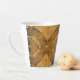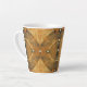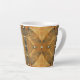 The original abstract pattern by ZoeSPEAK on this small Latte Mug was designed from Zoe’s original photograph of a sea shell. The closeup photo of the white shell ridges has been combined to resemble parquet floor tiles, tinted golden brown. The tiles have an added touch, studded with curved metallic diamond shapes marking the seams.