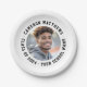 Modern, white or custom colour graduation photo paper plate with your custom name, school and year in a white font. You can change font and background colour, move and resize elements with the design tool.