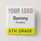 Our square student name button is easily personalizable with your school logo, student name, or other custom text. It attaches with a safety pin back. This affordable name tag is ideal for students (age 10 and up) on field trips, in classrooms, and other situations where quick identification of students is necessary. Designed in yellow and other colors (all colors are customizable). Our square buttons are 2 inch x 2 inch. Made in USA. No minimum order quantity and no setup fee.