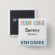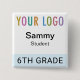 Our square student name button is easily personalizable with your school logo, student name, or other custom text. It attaches with a safety pin back. This affordable name tag is ideal for students (age 10 and up) on field trips, in classrooms, and other situations where quick identification of students is necessary. Designed in light blue and other colors (all colors are customizable). Our square buttons are 2 inch x 2 inch. Made in USA. No minimum order quantity and no setup fee.