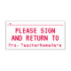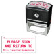 This computing themed rubber stamp design features the message "PLEASE SIGN AND RETURN TO", plus a line for a signature or initials to be written above. It also features a customisable tutor or educator name. It could perhaps be used by a tutor, educator or teacher to ask a student’s parent(s) or guardian(s) to review the student’s work on an exam, an essay, a paper, or some other school assignment.