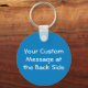 Studio microphone silhouette on blue background. Custom text on both sides.