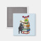 This square magnet ideal for back to school. Fun drawing of a school girl on top of a stack of books. By her side is an adorable black German Shepherd puppy. (Xena is my GSD. About 4 months old in this photo).