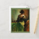 Study in Black and Green by John White Alexander (Pennsylvania 1856–1915). The idealised, impassive woman, shown as if she were a precious object was a painter favourite subject, Here, a young beauty is absorbed to pinning a bauble or blossom to the low neckline of her elegant evening gown. The skirt’s sinuous striped pattern, the curves at the knees and shoulders, and the contour of the upswept hair justify the description of Alexander as “the painter of the flowing line.” His dazzling brushwork is especially noteable in the rendering of the rich fabrics and in the otherwise plain background.