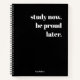 Study Now Be Proud Later Retro Black White Modern Notebook