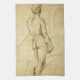 Sketch or drawing of Michelangelo's David by Raphael Sanzio, Raffaello (1483-1520) is a vintage Renaissance Era fine art portrait piece viewing the male model from behind. Raphael studied the techniques of both Leonardo da Vinci and Michelangelo and made many sketches of life models posed in the same way as Michelangelo's statue of David.
