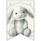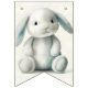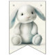 Cute and simple, adorable little stuffed bunny Welcome Baby bunting flag shower decoration matches the Stuffed Bunny Shower Invitation.