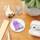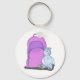 Stuffed Unicorn sits by a purple school Backpack Key Ring