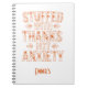Keep your thoughts and notes organised with our 'Stuffed with Thanks Not Anxiety' spiral-bound notebook. The vibrant white cover featuring a motivational message in orange text makes it perfect for daily use or as a thoughtful gift. Made from high-quality materials, this notebook is designed to last. Personalise the colour of the design and name by clicking 'Edit Design' or 'Personalise.' Embrace gratitude and let go of anxiety with this customisable notebook.