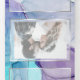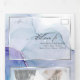 Ethereal splash of alcohol ink stains in shades of striking aqua, violet purple and pale lilac - each section highlighted with a sheer white overlay framed in platinum silver, on the front centre is your photo accented with a double gold frame and behind the sheer white overlay for an esoteric appeal a beautiful modern abstract design for an all in one wedding invitation complete with pre-addressed detachable meal choice rsvp for your guests to easily mail back - a stunning all in one wedding invitation -