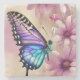 Stunning Blue Butterfly and Pink Flowers Stone Coaster