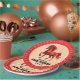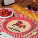 Welcome the Chinese New Year on February 17, 2026, with these paper plates, which feature the stunning design of a fiery red horse with flame-like mane, tail, and flame motifs, on a peach-colored background with a repeating pattern of the Chinese letterforms for the new year salutation. Text and messages can be personalized in English and Chinese.