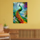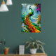 Stunning peacock with magnificent tail feathers - original from Ricaso. Peacock bird in red, green, orange and purple colors wall art / poster / print