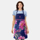 Designed for both beauty and everyday use, this apron offers comfortable coverage while keeping clothes protected from spills and splashes. The bold contrast of pink florals against the deep blue background creates a timeless look that feels both fresh and sophisticated—perfect for floral lovers and anyone who enjoys functional style.