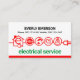 Over at the top lies your prestigious name and the contact details alongside the business name "electrical service" in green.