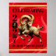 Elevate your 2027 lunar new year entertainment experiences with this celebratory poster, which features the Fire Goat dancing on a luxurious faux red silk background with the Chinese letterform for the Goat/Sheep/Ram rendered in faux gold foil, standing in place of the zero in 2027.