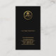 Overleaf, in a similar black background, all the information is at the midsection. The faux gold logo of a chauffeur stands at the top with a slogan tagline just below ; The business name and contact details lie near the card's floor.