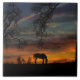 A horse and heritage oak trees silhouetted by a southwestern sunrise with birds, this stunning fine art tile is a great country decor piece. This photography was taken on the Central Coast of California, San Luis Obispo area, known for it's horse and wine country and natural beauty.