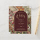 Beautiful vintage botanical art wedding item featuring burgundy, terracotta flowers and arch.