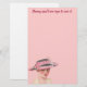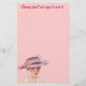 This unique stationery features a vintage image of a woman in a fancy hat. The text and background colour can be customised to fit your needs.
