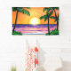 Stunning Watercolor Palm Trees Sunset, this design features a beautiful, Stunning Watercolor Palm Trees Sunset graphic. In an old school retro style.