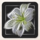 Stunning White Lily Fractal Art Black Square Paper Coaster
