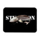 Tying into a monster sturgeon is an experience of a lifetime. Catch one and you are hooked. Full colour life like image of a giant sturgeon with the text Sturgeon in the background.