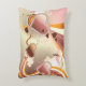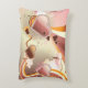 The cushion is small to medium sized. It can be washed. It is well constructed. The material used is pleasant and feels decent quality. It has a very slight plush feel which is good. It is well labelled and its care clearly stated. Theres nothing not to like about it. All in all a good item. The deduction of one star overall is due to long delays in delivery to the UK. It's not clear if this was due to Zazzle or somewhere else in the chain as I did not receive status updates of dispatch or progress. I cannot comment anymore on that other than to say that was our experience but it may not be the same for you. The printing was surprisingly close to what we were expecting. Its an art piece and on material so its hard to assess the precision of printing but it seems close to the original. The soft lines are reproductions of the original. The colour is a fair reflection of the painting. This was printed in the US and it looks like US quality. No issues.