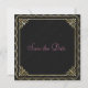 Elegant and stylish gold border on textured black background "Save the Date" card that can be customised.