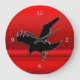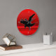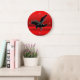 Stylised Black Flying Raven, red metallic effect Large Clock