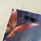 Fantasy design with a butterfly and flower, with swirls of purple and orange.