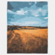 Wrap yourself in the warmth of a summer day with this soft and inviting fleece blanket. Decorated with a striking, stylised illustration of a countryside road cutting through bright golden fields beneath a cloudy blue sky. This beautiful piece offers both comfort and a stunning visual aesthetic for your living room or bedroom.