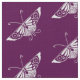 Fabric in a reproduction of a stylised Art Deco butterfly wallpaper pattern - white on an eggplant purple / aubergnine background