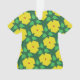 Stylised yellow flowers with green leaves against a darker green background is a fun design for flower lovers, gardeners, green house workers and horticulturists.