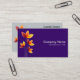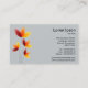 A business card template design with an attractive stylised flower motif made up of an arrangement of three petalled flowers on long dashed line stems. Suitable for many types of business. The company name and business type are on the front with name and contact details etc on the reverse side.