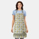 This nature-inspired pattern of hand drawn leaves in two shades of gold is highlighted by a wide border and a circular corner frame to hold your name and monogram. The apron straps as well as the background shown here in white, the khaki green border with it's narrow stripe in white and the text colours are all changeable to any colour of your choice. Makes a unique, personalised gift just by adding a first or last name and monogram. Search ID707 to see other colour choices and products with this pattern.