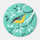 Bird magnets with decorative Red Breasted Nuthatch art on branches with a swirl pattern