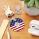 This personalised American flag keychain features your custom monogram atop a stylised USA flag graphic with red and white stripes and white stars on blue - by katz_d_zynes