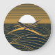 Stylised illustration of a sun or full moon rising or setting on a dark sea.