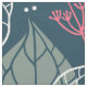 Sage-green and yellow stylised tropical leaves pattern. Pink and white accents.