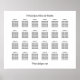 Stylish 24 Table Wedding Seating Chart Poster, please personalise the names of the couple and the names of the guests along with any of the other text that you may wish to personalise. A simple minimalistic poster featuring modern black text in a stylish layout on an elegant white background.