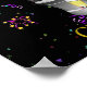 A stylish 70th Happy birthday Poster . Deign features an ice bucket with bottle of sparkling wine/ fizz/ bubbly, flute glasses balloons, and confetti all on a black background with gold coloured text. Makes a lovely poster to display at a special birthday party especially for a surprise party. Can be customise for any age and title then personalise by amending the name. Background colour can be changed if needed just click on the personalise it further button.